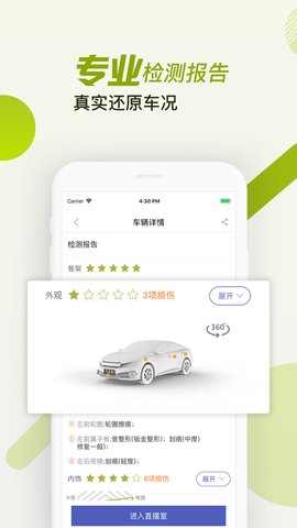 4.二手车检测和评估:平台执行多项国际领先的检测标准,能够真实反映车辆状况,确保报价的真实性和有效性。整车检查约需30分钟,实际数据将记录在检查报告中。