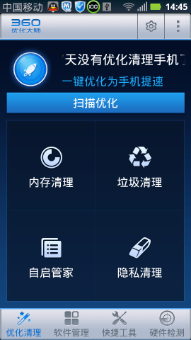 360清理大师app是一款功能强大的专业安卓系统管理软件,具有手机加速、节能优化、软件管理、文件管理、快速设置和系统检测六大功能。