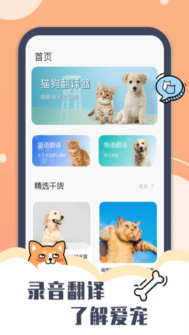 猫狗语言翻译:能准确记录你和宠物的声音,并进行分析,恢复你和宠物之间的交流内容,让你和宠物互相倾听!