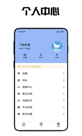 飞鸟外卖美食app是一款外卖软件,每天都有大量的外卖食品提供给用户,用户可以选择他们最喜欢的外卖食品,然后点击下订单,方便快捷,而且每天都有各种优惠等着你,感兴趣的朋友快去下载吧!