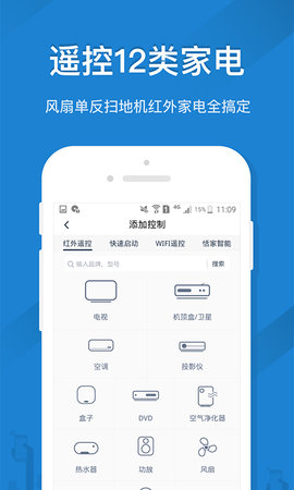 3.支持多种红外码库配对方式,支持红外协议快速匹配,将空调、电视、机顶盒遥控器安装到手机中