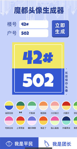 1.在魔都头像生成器软件中,普通居民可以选择“我是平民”,输入相应的房号和户口号,生成自己的门牌号的Avatar。
