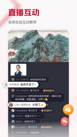 及象教育是专业的绘画知学习交流平台,用户可以在及象教育学习各种书画艺术知识,课程全面,支持书法、国画等各种精品课程,你可以在这里进行一对一的专业辅导,内容丰富,学习便捷。