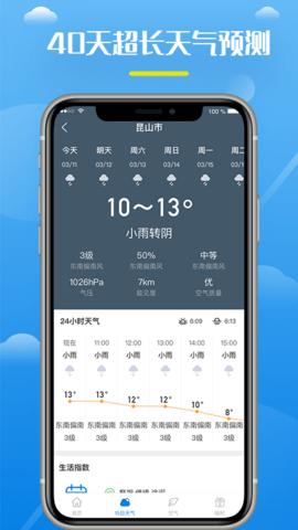 详细天气,详细每日天气,可以查看全天的天气变化,避免剧烈降雨。