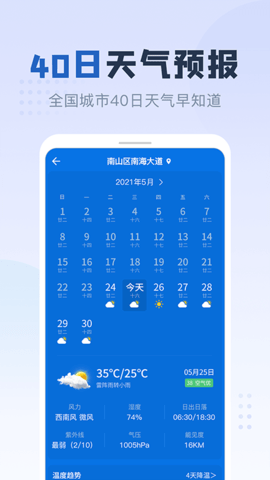 用户可以在该软件中看到多达15天的天气预报,并可以提前做出安排。