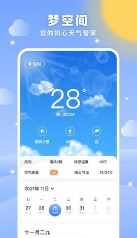 梦空间生活app是一款手机天气查询软件,这款软件可以查询未来15天的天气情况,此外,这款软件是每天实时更新最新的天气情况,十分好用。有需要的小伙伴快来下载~