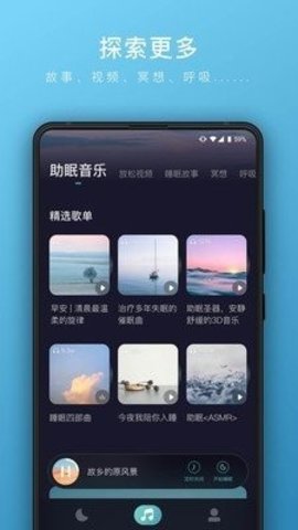 3. 您可以选择这里的睡眠音乐来帮助您入睡,多种睡眠音乐可以自由选择;