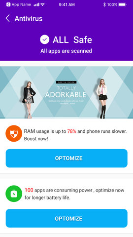 1、全面扫描手机,垃圾文件无藏身之处,一键保洁不留残留物