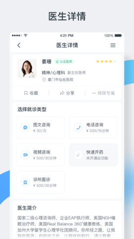 3. 您可以在软件列表中查看该医生的详细信息,该医生擅长的疾病类型,以及该医生的资质。