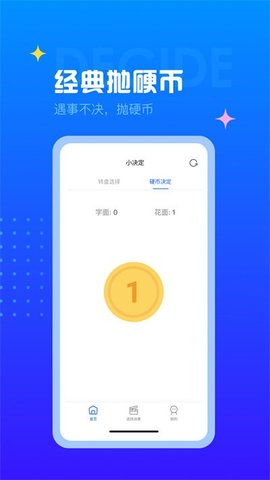 决定转盘是专门为困难的人们构建软件,当不知道吃什么,可以打开软件转盘的转动,迅速帮助你做好决定,也可以设置不同的场景来帮助你做出的选择,除了转盘确定,也可以通过硬币来决定。