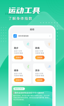 1.通过计算身体质量指数指数,根据身体数据提供每日最佳运动量和饮水量。