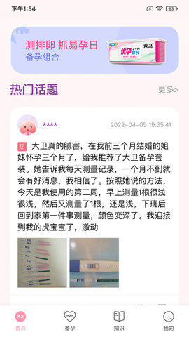 大卫优孕app是一款专为备孕女性打造的软件,帮助用户科学备孕,为您精准解读排卵试条,同时软件内推送的小知识能够改善用户体质,提升受孕几率,感兴趣的用户快去下载体验吧!
