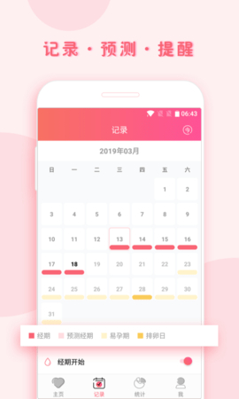 3.科学预测:自带的安全期计算器,可以预测月经期和安全期的日期。