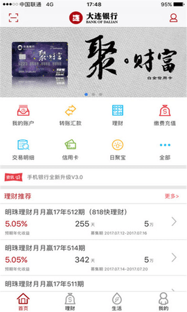 在大连银行的手机银行应用中,方便用户更好地操作所有银行信息。大连银行的移动客户端使用非常方便。可以随时随地查看账户余额,随时转账汇款。它具有账户管理、转账汇款、财务管家、支付充值、信用卡等常见财务功能。同时,它还结合手机的特点,推出网络地图、理财助手、优惠信息、等生活特色服务功能。