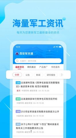 西安军采通APP是西安军民融合发展服务中心打造的海量军工行业信息集合。网上有很多商机。软件汇集了涵盖招投标、技术咨询等服务的大量信息内容,为企业之间搭建了更坚实、更全面的桥梁内容。该软件功能全面,信息丰富。感兴趣的朋友快点来下载吧,千万不要错过了!