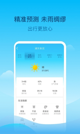 3、贴心生活助手,多方位生活指数和空气质量指数数据,关注您的着装、出行、雨伞提醒等方面。