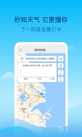 2、2小时准确雨雪预报,降水雷达图的趋势清晰,提供分钟级准确的天气预报,使旅行更加有保障。