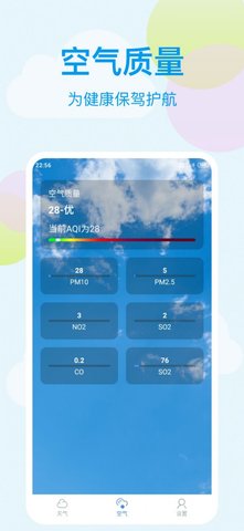 3、实时更新最新天气预报,24小时为大家实时更新。它还提供每日空气质量数据。