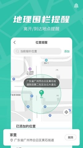 2、位置提醒,具有地理围栏功能,下班后及时向家人汇报.