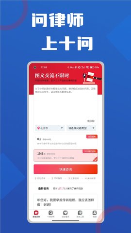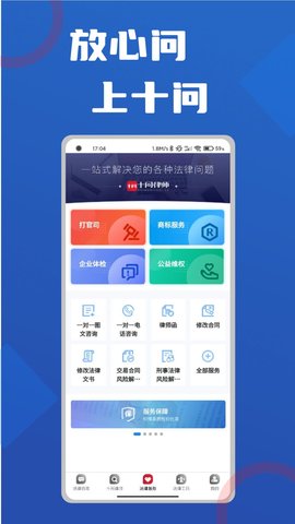 3、别担心您可以随时咨询,一站式解决用户的各种法律问题。