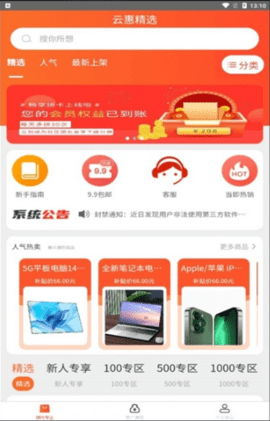 云惠精选是非常不错的手机购物软件,软件提供了非常多的优质的商品,商品种类齐全,你可以轻松买到需要的商品,平台爱会不定时发放无门槛优惠券,让大家可以花少量的钱,可以买的更多