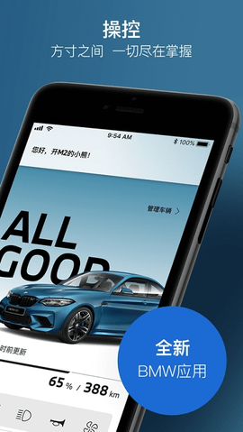 车辆:一键帮助宝马新车主激活互联网驾驶服务。远程访问和管理您的汽车,轻松调节车内温度,方便查看剩余燃油、充电状态、里程等重要信息,掌握驾驶状态。