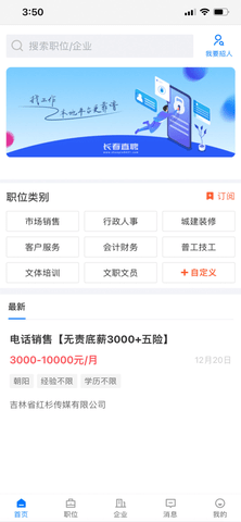 1、长春招聘app提供全职招聘专栏,涵盖各类岗位招聘信息;