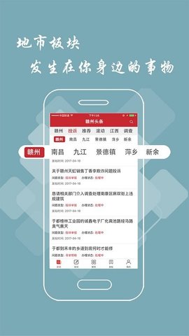 赣州头条官网版提供本地化的资讯应用,是赣州本地新闻应用,赣州头条新闻提供最新最热的新闻,新闻权威及时,新闻更新快、板块多,分类很详细,让你的碎片化时间不再无聊,欢迎下载!