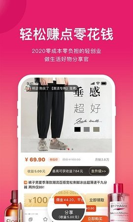 4、用户还可以通过在这里分享自己喜欢的商品,获得相应的提成,不仅可以购物,还可以赚钱