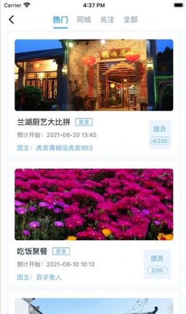 1、您可以通过单击随时设置活动,感兴趣的同一个城市创建或加入活动。