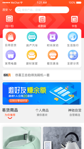 神驰易购为生活用品、房产、汽车、家电、建材、家居产品等提供交易服务。