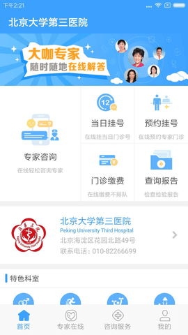 北医三院app是一款专业的在线预约挂号服务软件,医疗部分非常齐全,通过搜索功能,可以快速找到该功能的入口,需要的用户可以随时在线点击,所有医疗付款记录和订单可直接在线查看。