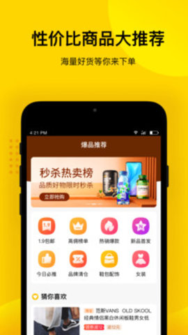 1、一个让你购物省钱的电子商务平台。平台的产品种类非常齐全,可以很好地满足每一个消费者的购物需求。无论你想买什么,你都可以在网上直接在手机上下单,非常方便。