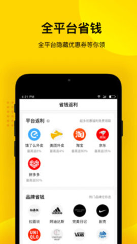 3、让大家随时在这个地方搜索各大品牌优质好货的优惠券,下单即可享受即时折扣,购买后还可享受返利。