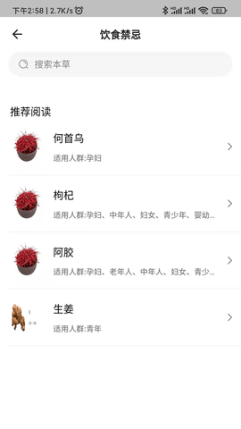 2、饮食禁忌和各种食材组合之间的禁忌将在网上完整呈现给用户