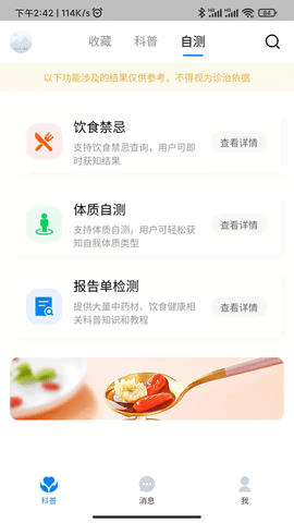 3、健康科学,在线为用户提供专业的健康科学,帮助用户确保人身食品安全