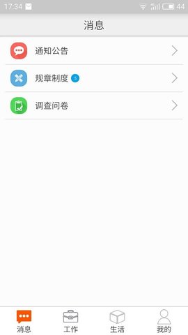 1、下载安装邮政员工自助服务APP,打开软件,进入留言界面,为您提供通知、规章制度、待办事项、工作预警、业务反馈、工作圈、调查优惠券等功能,功能一目了然