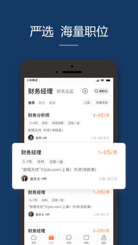 前程无忧招聘网App是专业的求职招聘服务平台。求职者可以在平台上搜索自己喜欢的工作岗位,也可以根据自己的设置进行系统的筛选和推荐,丰富的各行业招聘信息、招聘内容等可以在线预览。