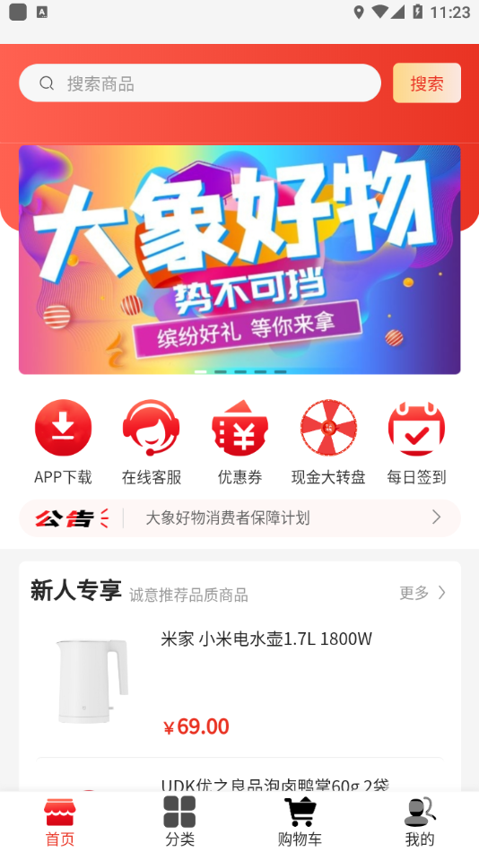 大象好物APP是一款购物软件。覆盖生活这里的整个商品品类,满足很多用户的购物需求,网上可以订购各种商品的选购,每天都有各种商品可以收到优惠券,赶紧下载试试吧!