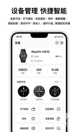 一键连接智能可穿戴设备,授权、短信、电话、微信信息等信息可同步推送至智能设备