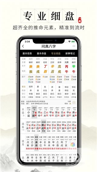 问真八字app是一款算命软件。它是在周易的指导下建造的。用户只需输入自己的姓名、性别、出生日期等信息,就可以帮助您在线计算命理,十分详细都能精准计算。