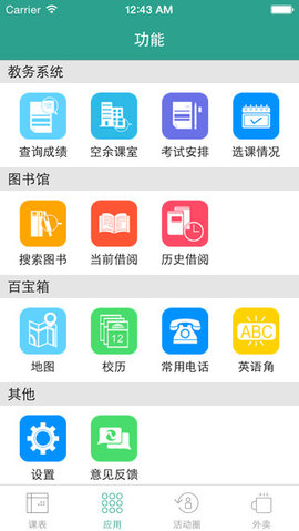 2、手机在线考试成绩查询、选修课注册、课程查询等功能,分为不同类别供您快速地查找。