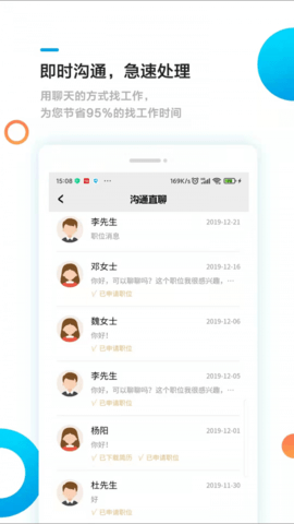 1、【找工作聊天】就像微信一样,你可以在网上和你的上司聊天,一个小时内就可以上班