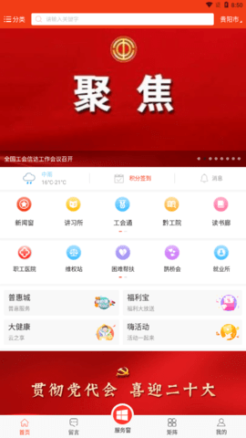 2、专题活动信息和服务信息,员工可根据贵州工会云网站和新长征APP享受服务