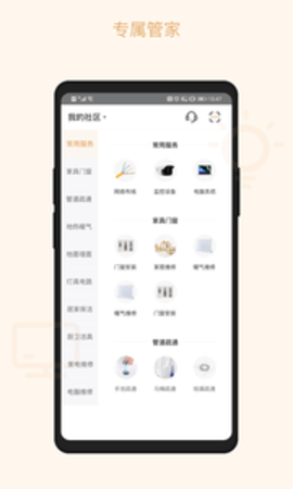 2、这里聚集了大量的服务功能,比如物业支付、工作区申报和上门服务,让你随时打开手机轻松掌握它们。