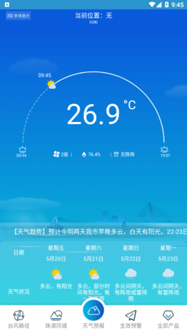 珠海风云2.0是一款面向珠海本地用户的气象信息服务软件,在这里,你可以实时准确地看到和控制各种天气、温度、风速等情况,优质的天气服务就在这里,让您获得更全面的天气信息提前知!