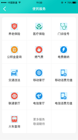 5、包含多项便捷服务,可在线查询公积金、火车票等