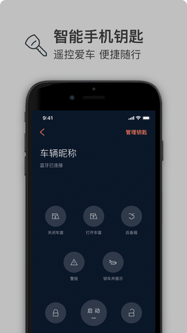 4、车辆控制:能够通过手机启动/停止车辆,打开/锁定车门。