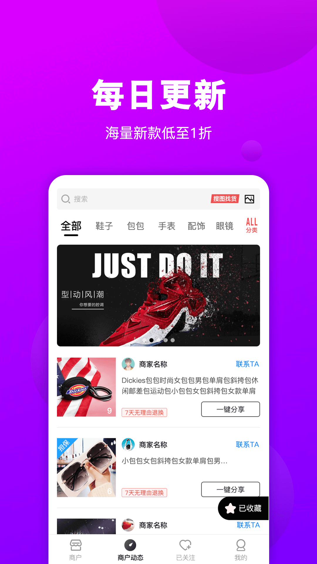 该软件提供了许多购物方式。您可以在这里与好友一起加入一个团体,或使用限时折扣活动进行购买。如果你想批量购买,你也可以在这里享受七折优惠。这个软件对于开服装店的用户来说是一个非常好的渠道。你可以在这里批量销售,也可以在软件上看到交付情况。