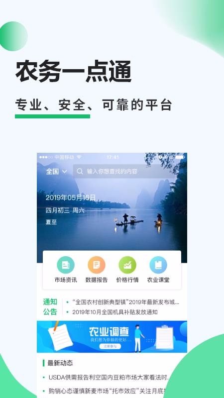 农务一点通app是专门为农业市场提供的资讯和服务平台,汇集了丰富的农务信息,也结合政务服务和商务服务内容,帮助用户一站式了解行业政策、农业调查、市场资讯、市场行情、农业知识等信息,从而解决用户的各种涉农问题;在这里,用户可以浏览到丰富的资讯内容,涉及的农产品也多样,包括了大米、稻米、生猪、蔬菜、肉鸡等方面,可以让用户个性化定制需要的资讯内容,也及时掌握各种农产品动态,从而帮助用户更好的进行电商交易、投资等;所以,想要一站式掌握农业市场动态,就可以通过该平台进行获取,还可以帮助用户学习更多农业知识。农务一点通下载就在yn下载站。
